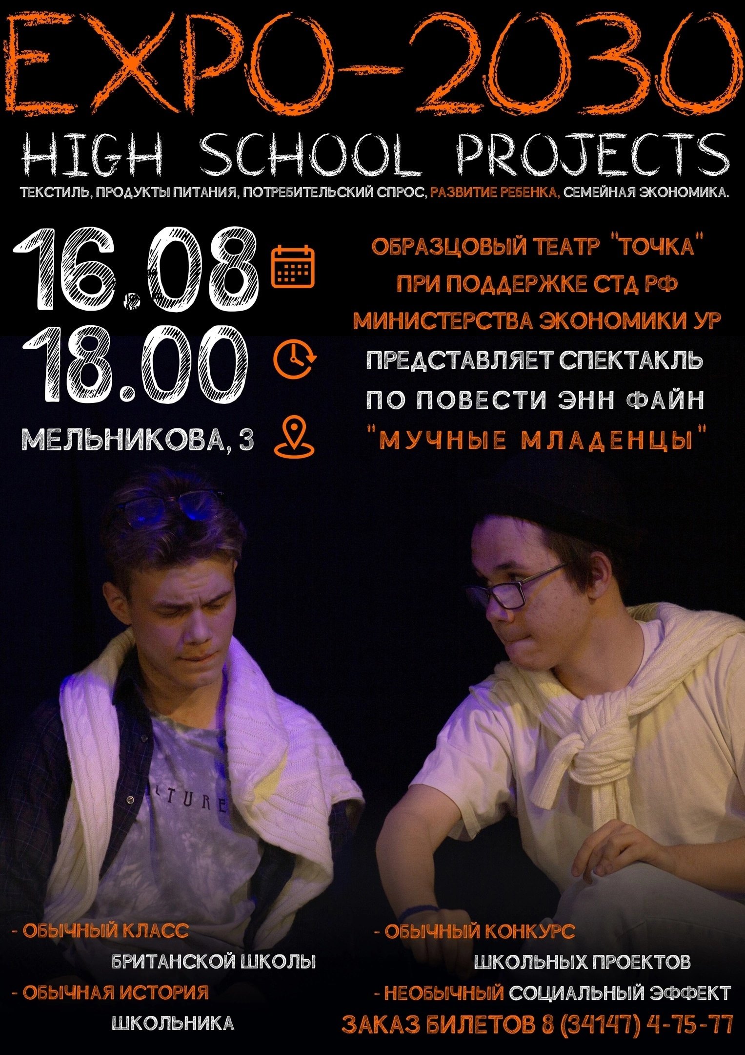 Спектакли проходят в рамках реализации проекта «Первая театральная школа «Точка» при поддержке Министерства экономики УР и Фонда президентских грантов.