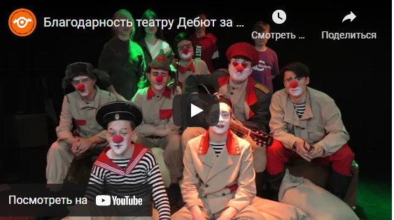 Спасибо Образцовой театральной студии «Дебют» , Елене Николаевне Огнёвой Константину Чекмарёву за их бескорыстное, оперативное и искреннее желание оказать помощь нашему театру.