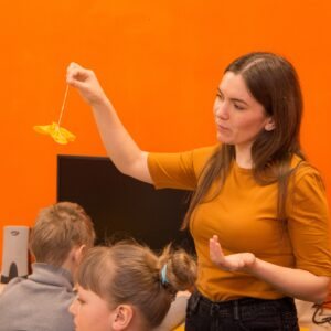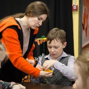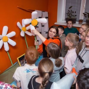 Была подготовлена экспресс-выставка, где узнали что такое театральная бутафория, реквизит и познакомились с работой швейной мастерской ТочкаМастер. Ребята смастерили традиционную текстильную куклу «Жаворонок», как символ весны и радости. А так же узнали о работе художественной мастерской АртТочка.
