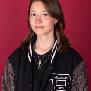 «Весёлый по жизни человек. Скучно со мной не будет точно. 9 лет занималась эстрадными танцами. Теперь увлекаюсь баскетболом, а также учусь играть на гитаре»