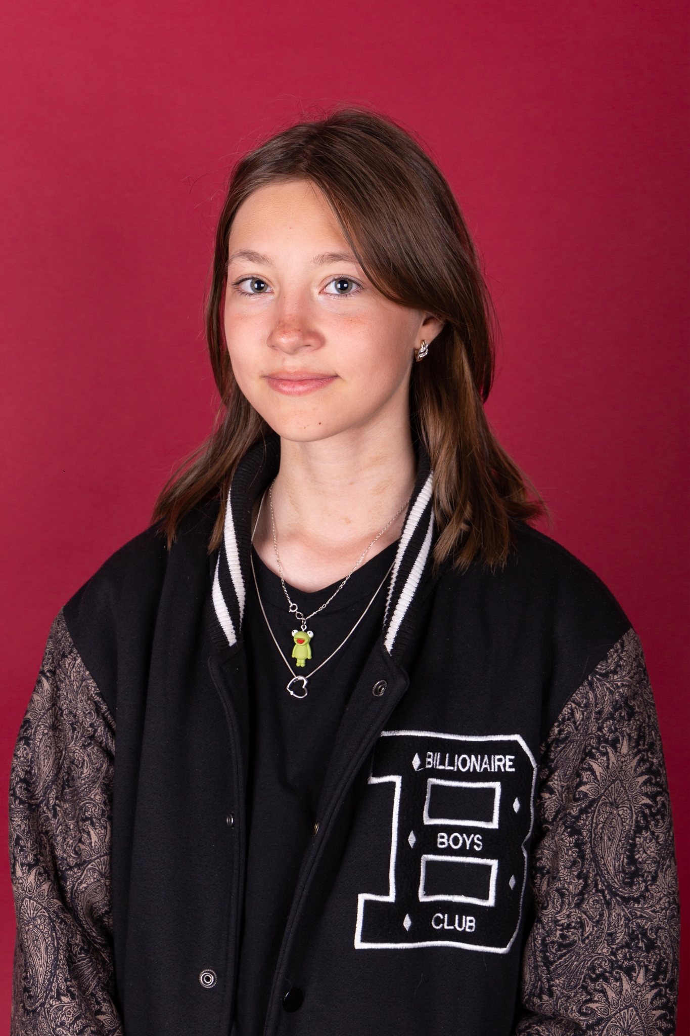 «Весёлый по жизни человек. Скучно со мной не будет точно. 9 лет занималась эстрадными танцами. Теперь увлекаюсь баскетболом, а также учусь играть на гитаре»