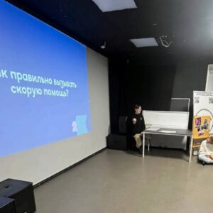 Даниил Александрович Макшаков — председатель первичного отделения Движения Первых в театре, а также победитель олимпиады по ОБЖ в городе и призер регионального этапа, рассказал и показал особенности оказания первой помощи человеку.