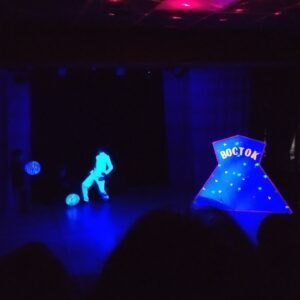 22 апреля прошла премьера интерактивного спектакля «Мимишки в открытом космосе». Впервые за весь год спектакль сыгранный без предпоказа собрал полный зал. Учитывая техническое ограничение на количество зрителей 62 человека смогли уместиться в зале Точкиного Дома. История о мечте стать космонавтом сыгранная в жанре клоунады, перетекающей в театр абсурда с элементами «черного» театра завораживает. Простейшие костюмы и реквизит из подручных материалов, клоунский грим и красный нос – все чем были вооружены юные артисты проекта «Театр Юного Актера «Точка» в этом спектакле. Следующий спектакль состоится 29 апреля, если Вы еще не успели найти билеты – вам стоит поторопиться!