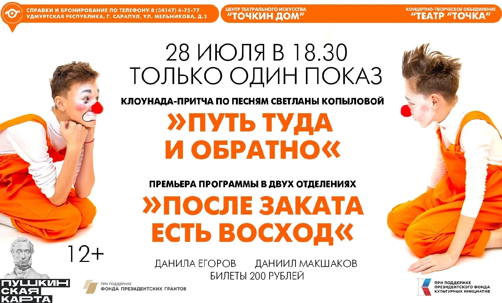🎭 Детская театральная школа «Точка» приглашает посетить душевную клоунаду-притчу «Путь туда и обратно»🎭