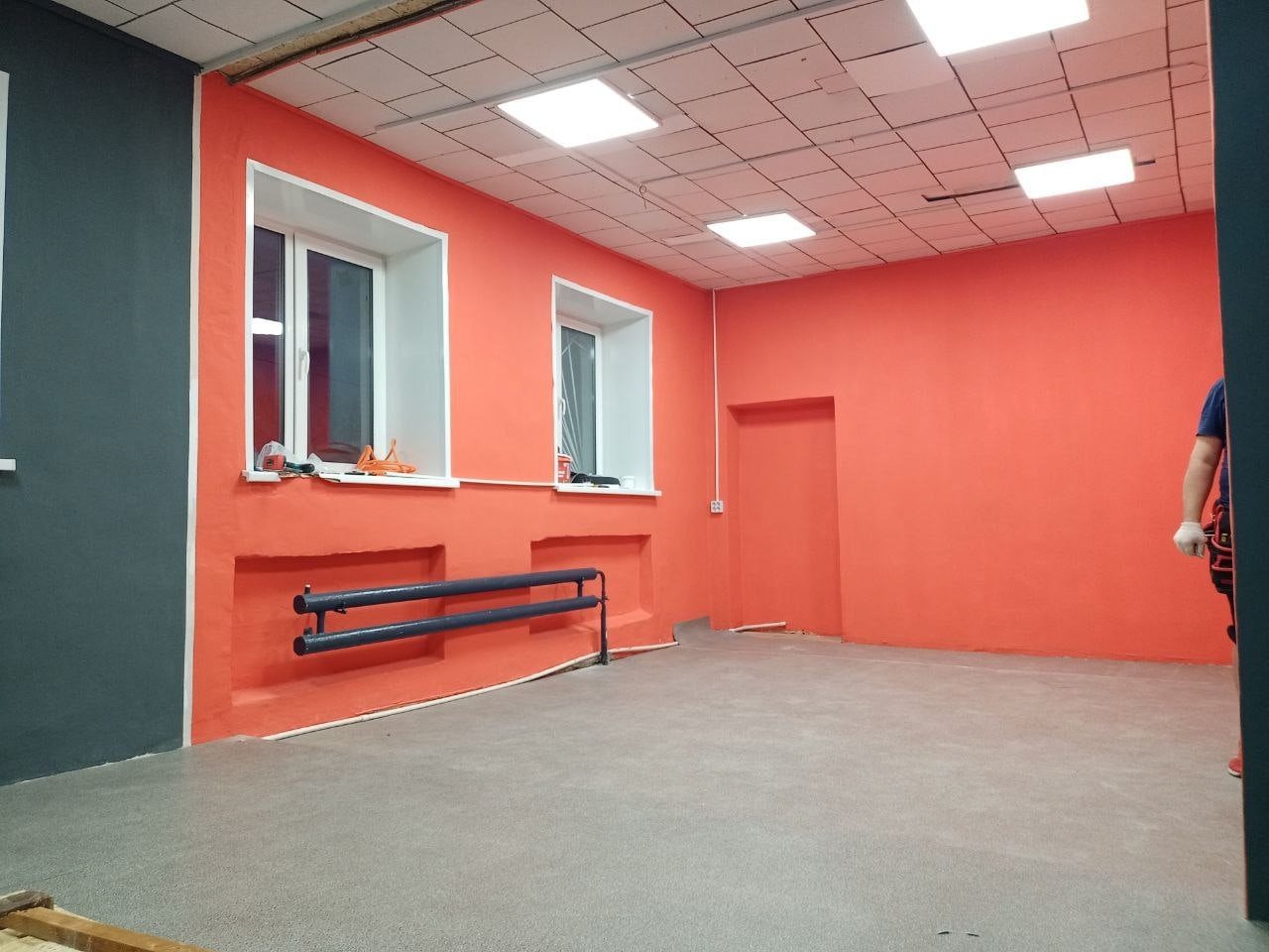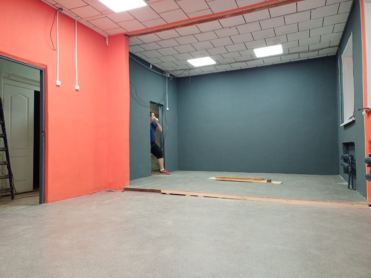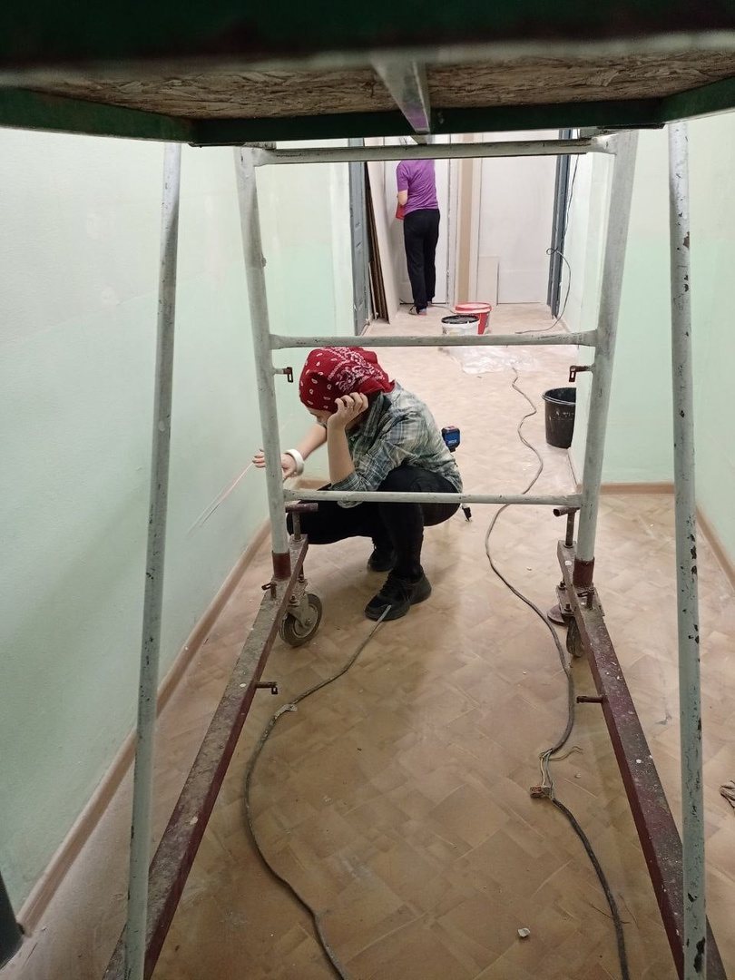 Малена Андреева доделала покраску Театральной мастерской номер 3 для ребят от 4-х до 9 лет, а Владимир Сергеев закончил подиум. Укладка линолеума и монтаж электрики от Артем Сергеев и кабинет готов.