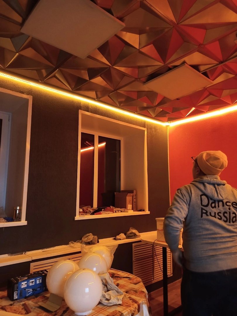 Никита Санников смонтировал светодиодные ленты для спец. освещения в фотолаборатории, где уже в это воскресенье пройдут первые занятия в обновленном классе. Так же текстурная подсветка появилась в коворкинге и студии звукозаписи.