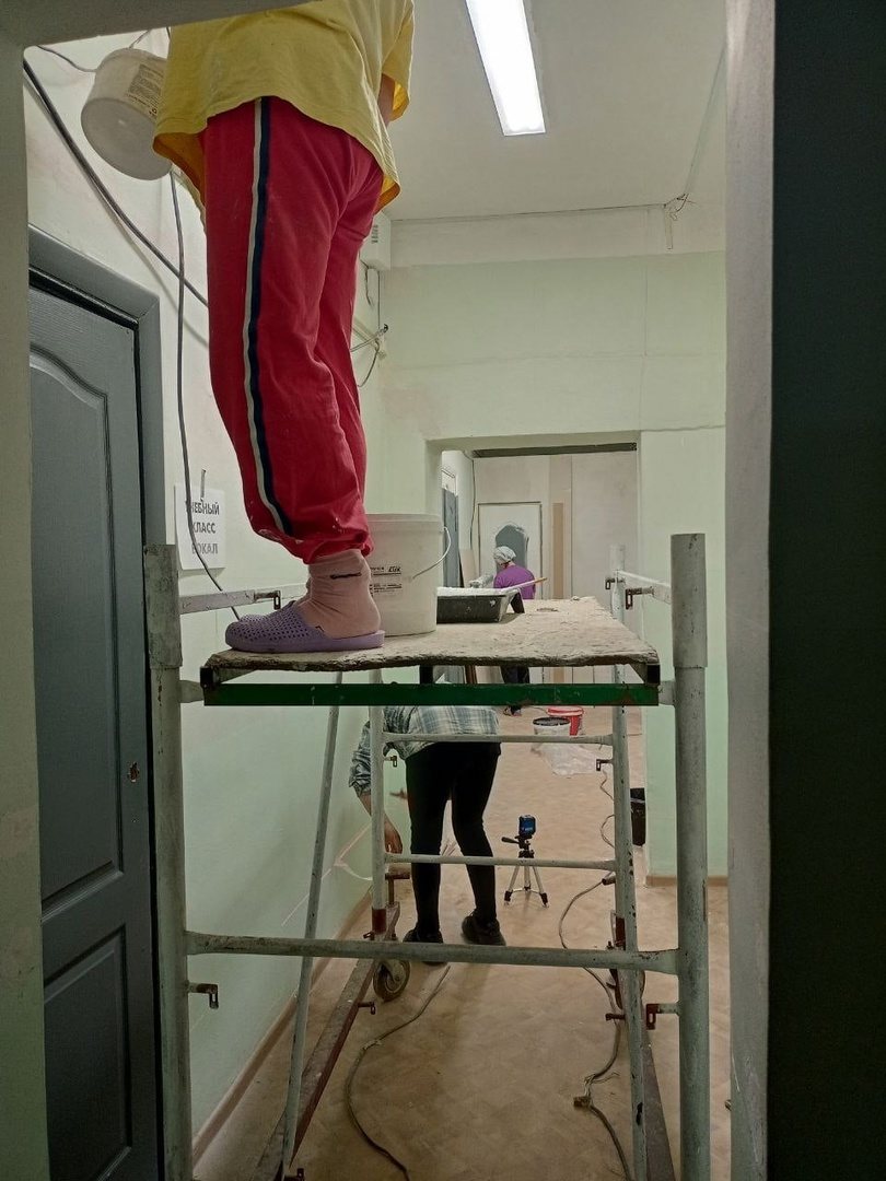 Ксения Микешкина со своей долей профессионализма и точности сделала разметку для покраски стен во всех коридорах, выкрасила двери.