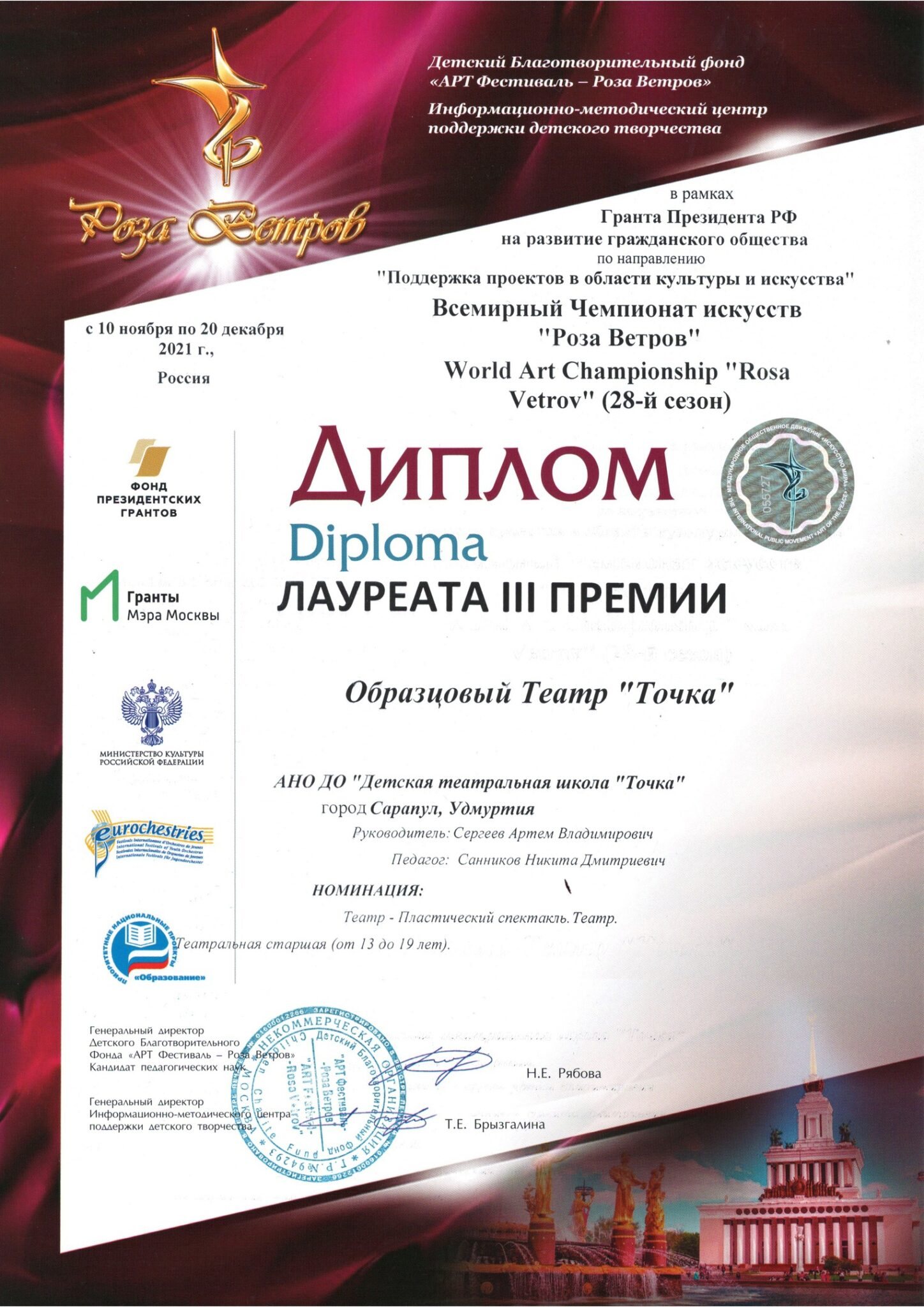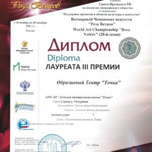 Наш Образцовый театр «Точка» получил заслуженную награду — Диплом Лауреата III Премии