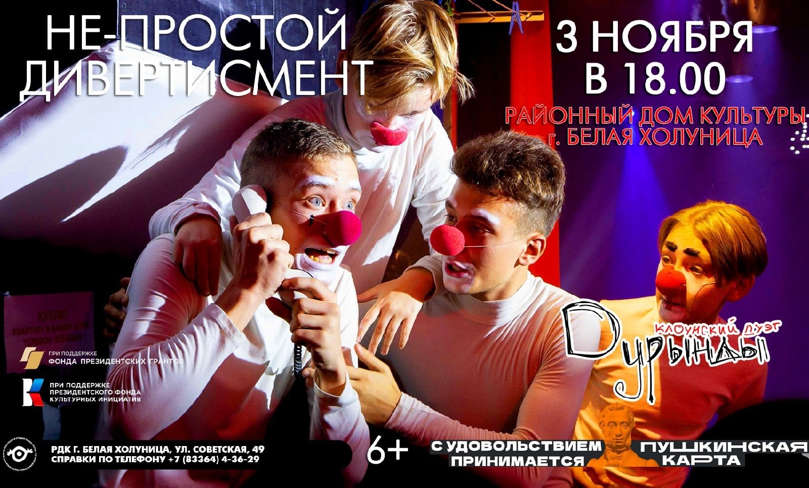 3 ноября в 18:00 «КЛОУНСКИЙ ДИВЕРТИСМЕНТ» ДУРЫНДЫ в районом доме культуры г. Белая Холуница