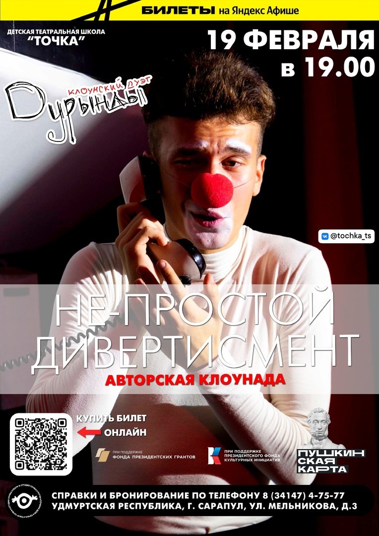 19.02.2023 — 20.02.2023 в 19:00. Клоунский дивертисмент «Дурынды».