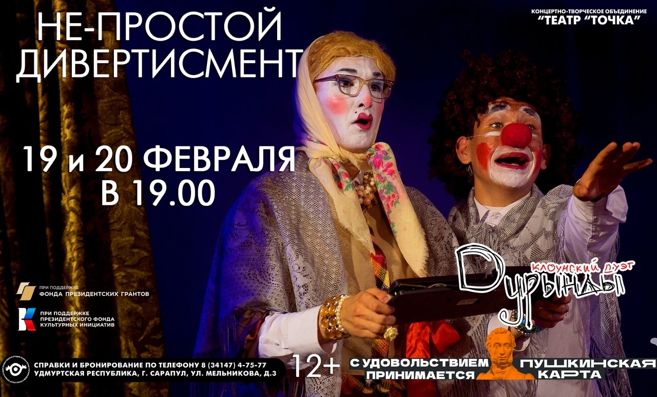 ⚡19.02.2023 — 20.02.2023 в 19:00. Клоунский дивертисмент «Дурынды».