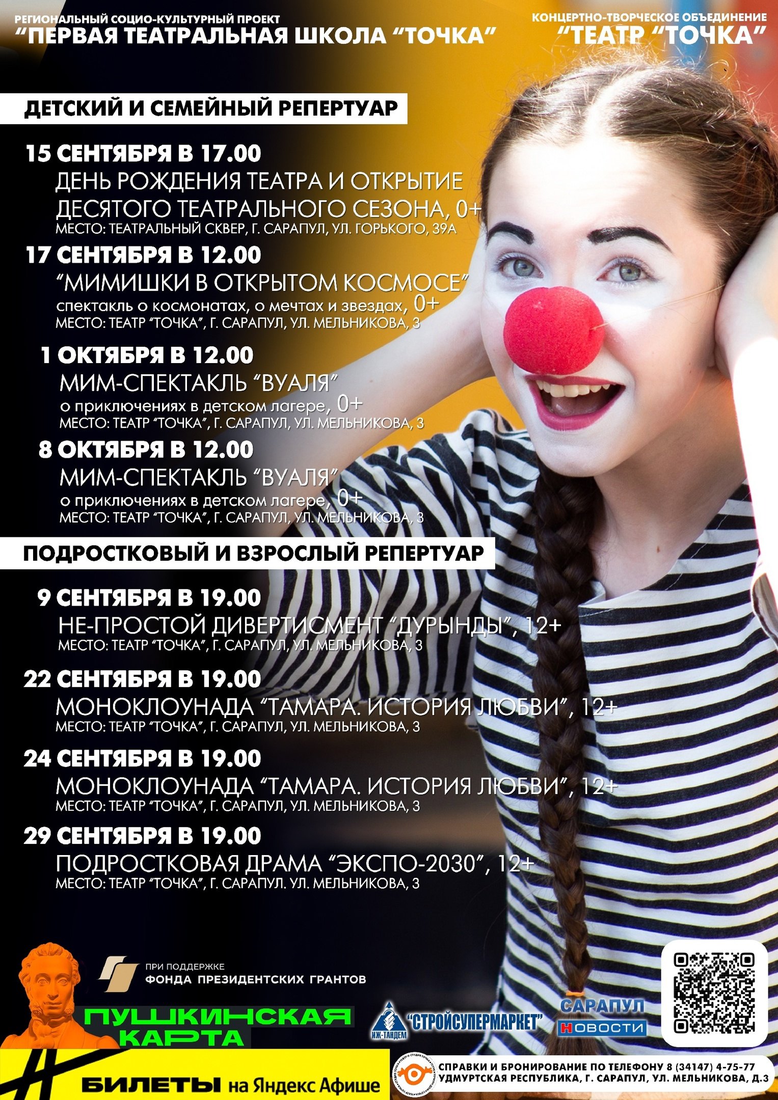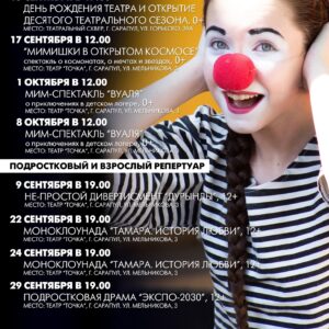 Первое сентября уже близко, а вы еще не знаете, что театр «Точка» открыл продажу билетов на сентябрьские и детские октябрьские спектакли!