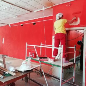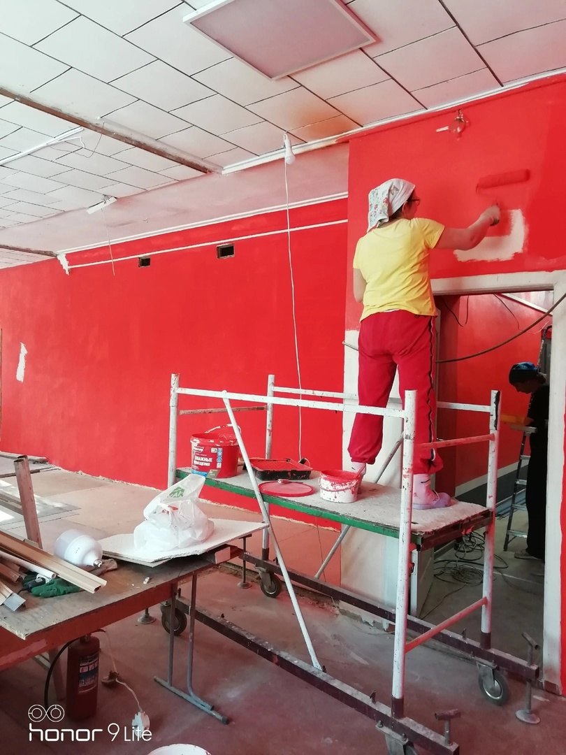 Осталось отштукатурить и покрасить гардероб, установить пвх панели в кухне и входной группе, решить вопрос с полом в хореографии и наша школа готова открыть свои двери для старых и новых воспитанников!