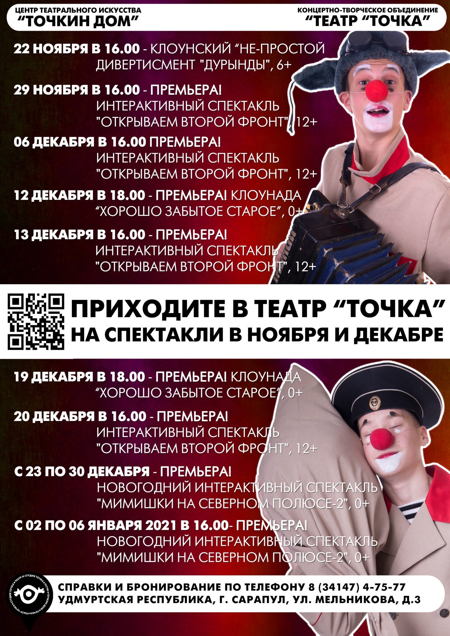 РЕПЕРТУАР ТЕАТРА «ТОЧКА» НА НОЯБРЬ И ДЕКАБРЬ 2020
