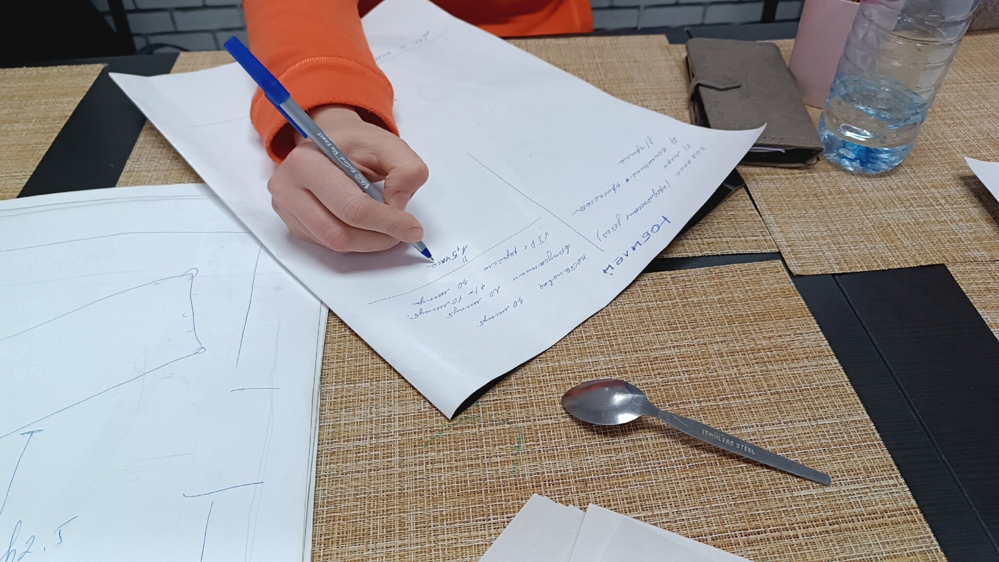 Решили что встречаться будем не реже чем раз в две недели. Сейчас предстоит оцифровать все задумки и спланировать деятельность — следующая встреча предстоит уже сразу в трёх направлениях: мамы займутся разработкой эскизов и набросков, папы техническим обеспечением придуманной идеи. А дети пойдут готовить хворост на театральной кухне.