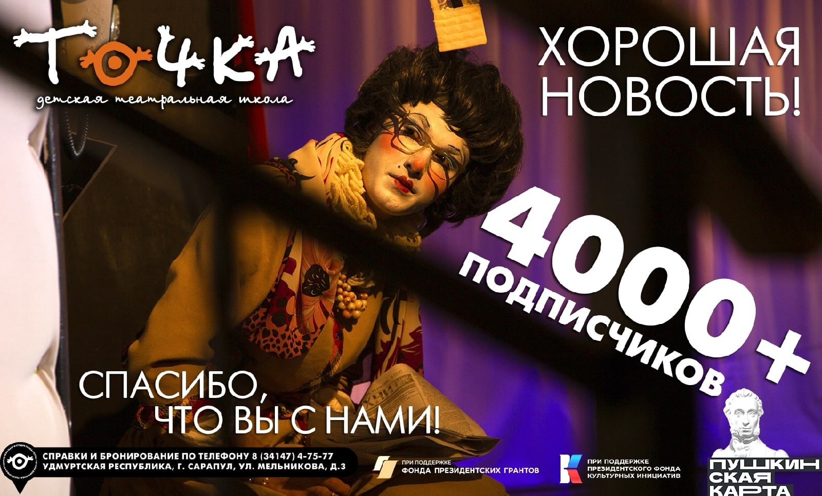 В нашей группе театра и школы «Точка» уже более 4000 подписчиков!