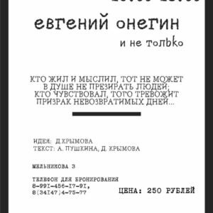 Знакомы с детства сюжеты вдруг открываются по новому, обретая неожиданные смыслы. А, иной раз, кажущиеся огромными пласты авторской философии, становятся понятными, доступными и невероятно актуальными. «Евгений онегин» — это пьеса Дмитрия Крымова, поставленный театром «Галерка»