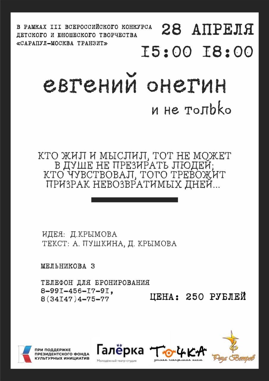 Сарапульскому зрителю представят спектакль «Евгений Онегин и не только»