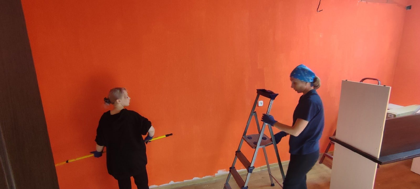 Яна Буторина Анастасия Каданина Лена Сергеева Малена Андреева Татьяна Самарина занимались покраской и подготовкой классов.