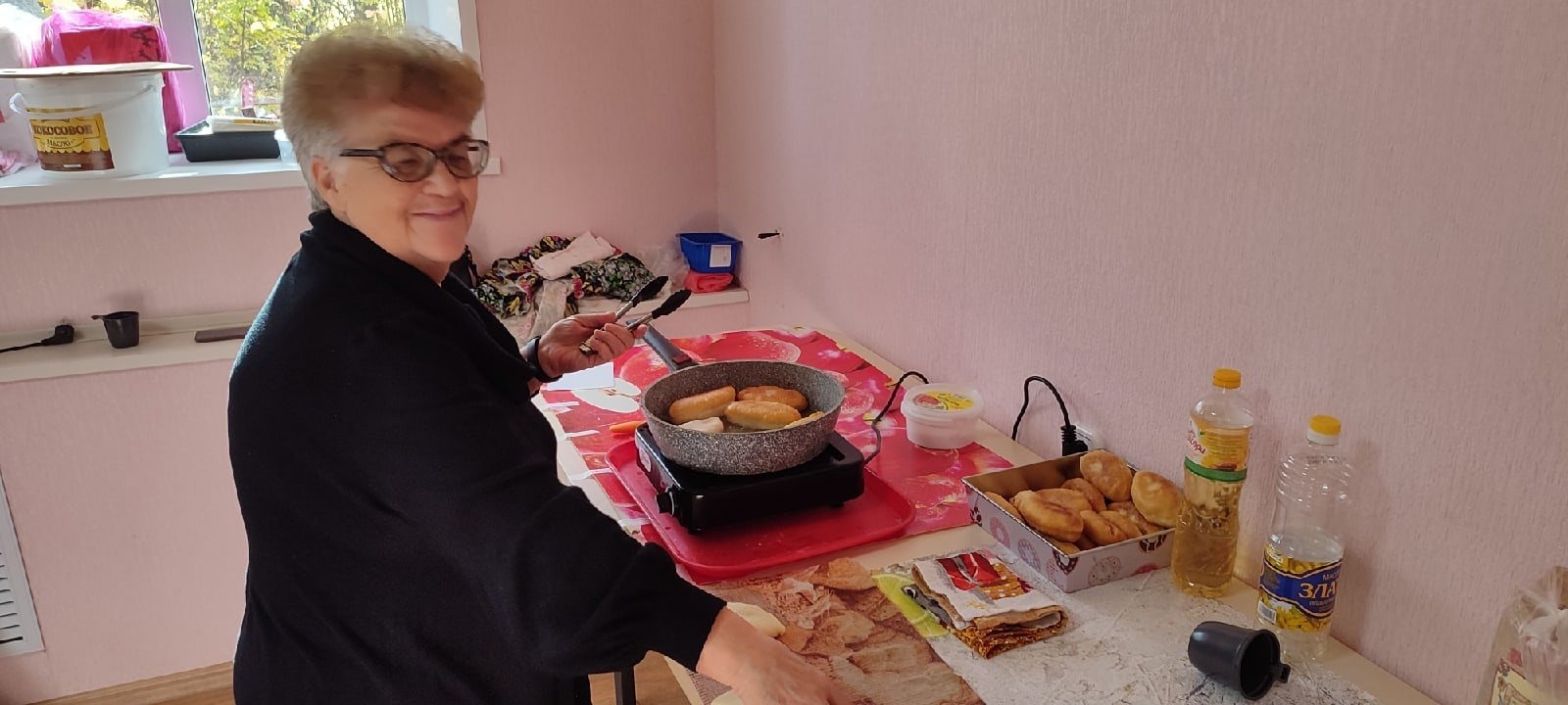 Конечно, как без вкусной выпечки, которую сегодня готовить, нашей Лилии Борисовне, помогала театральная бабушка Надежда Русских