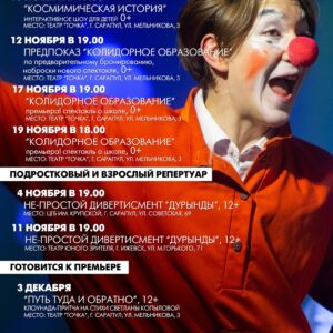 Репертуар театра «Точка» на ноябрь прямо перед вами! Успей выхватить билеты на премьеры.