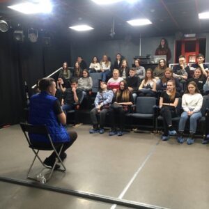 С первых минут «диалога на равных» в зале установилась добрая, сердечная, доверительная атмосфера. На встрече присутствовали студенты сарапульских техникумов и колледжей, а также участники сарапульской лиги КВН. Казалось бы, Сергеева Артема хорошо знает каждый причастный к культурной жизни города. Но когда спикер начал представлять широкое поле своей профессиональной деятельности, зал вначале затих, а потом разразился дружными аплодисментами: ведет огромную многогранную работу, помимо руководства театральной студией, выполняет и другие общественно важные задачи – входит в состав общественного совета Сарапула.