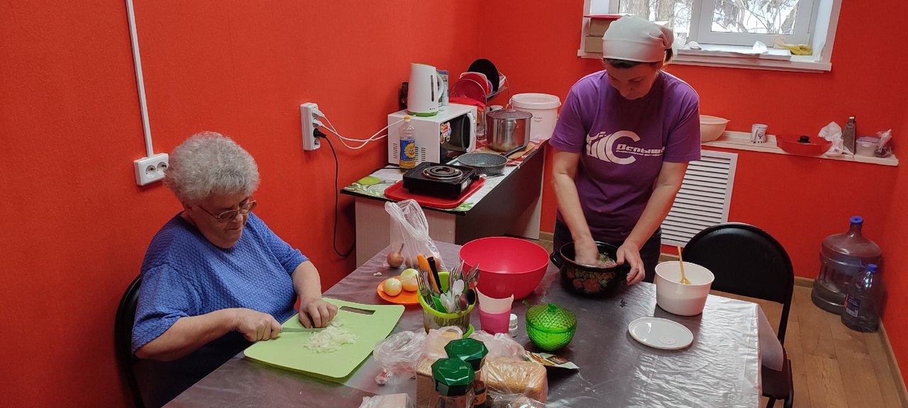 Наши театральные бабушки — причем обе Надежды — Зворыгина Надежда и Надежда Русских — занялись активной работой и заштукатурили и закрасили дальний коридор и приготовили кучу вкусняшек на обед соответственно.