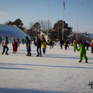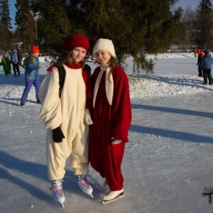 Вход на каток в этот день был бесплатным. Шуточные и спортивные соревнования состояли из