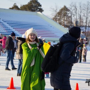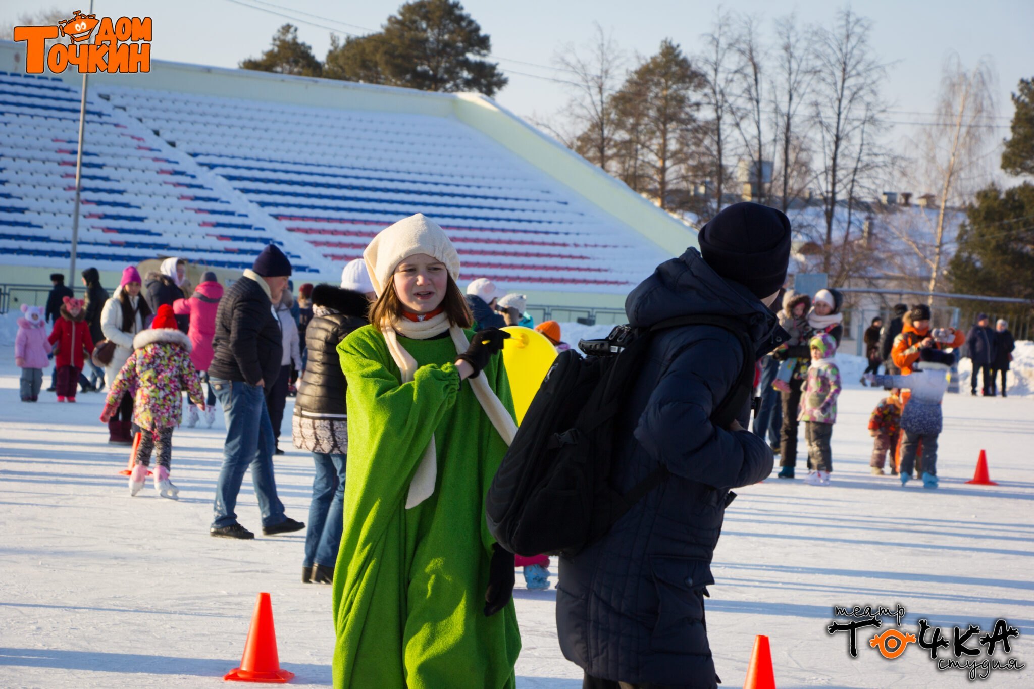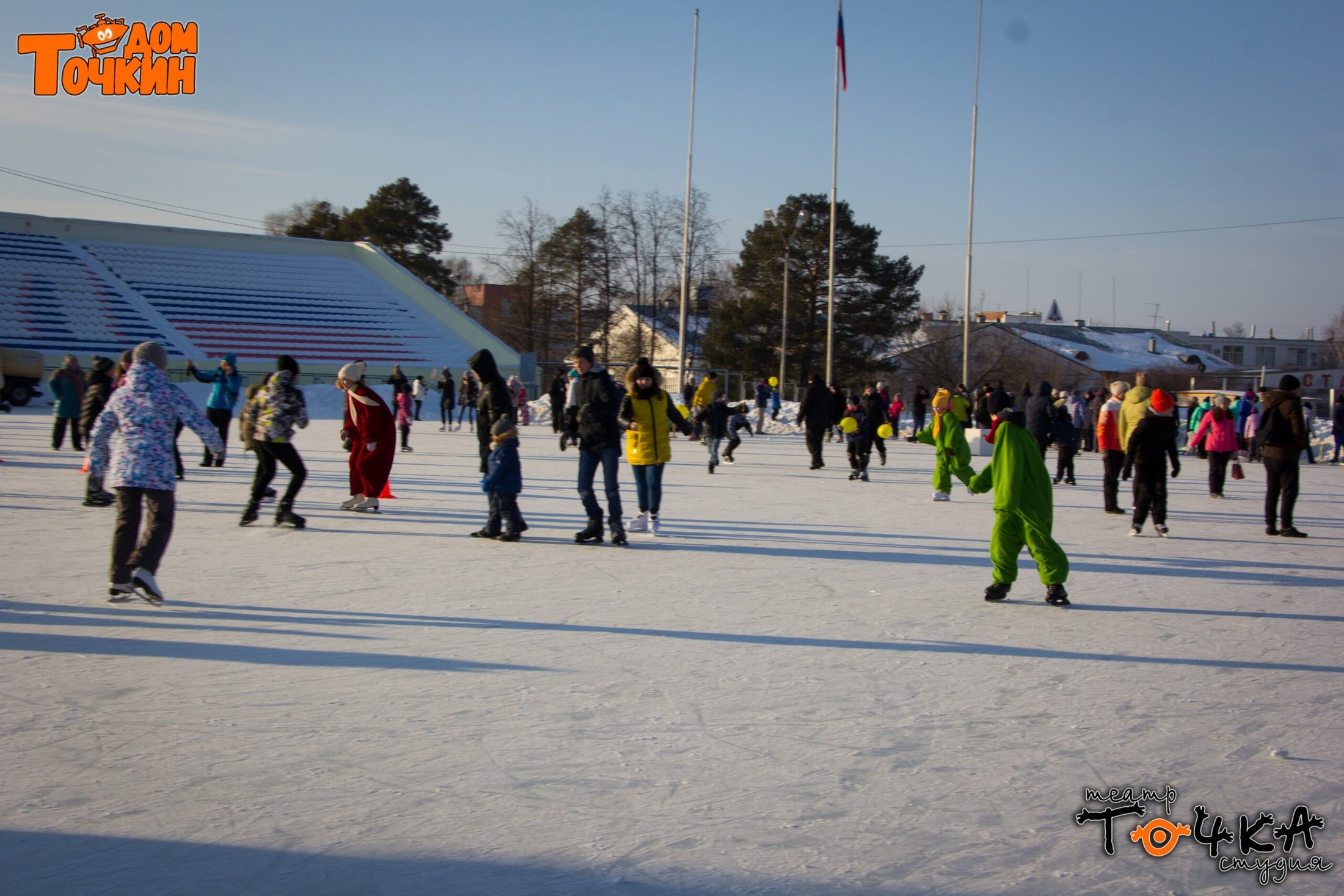 Вход на каток в этот день был бесплатным. Шуточные и спортивные соревнования состояли из