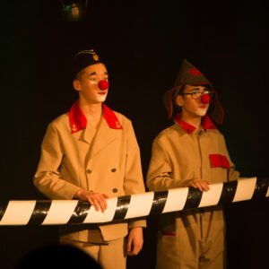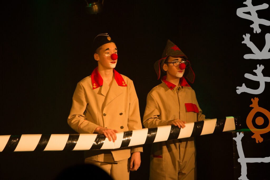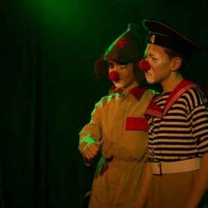 29 ноября театр «Точка» представил для Сарапульского зрителя премьеру интерактивного спектакля в жанре клоунады «Мимишки открывают второй фронт» в исполнении тандема актеров-детей и актеров-педагогов творческого коллектива.